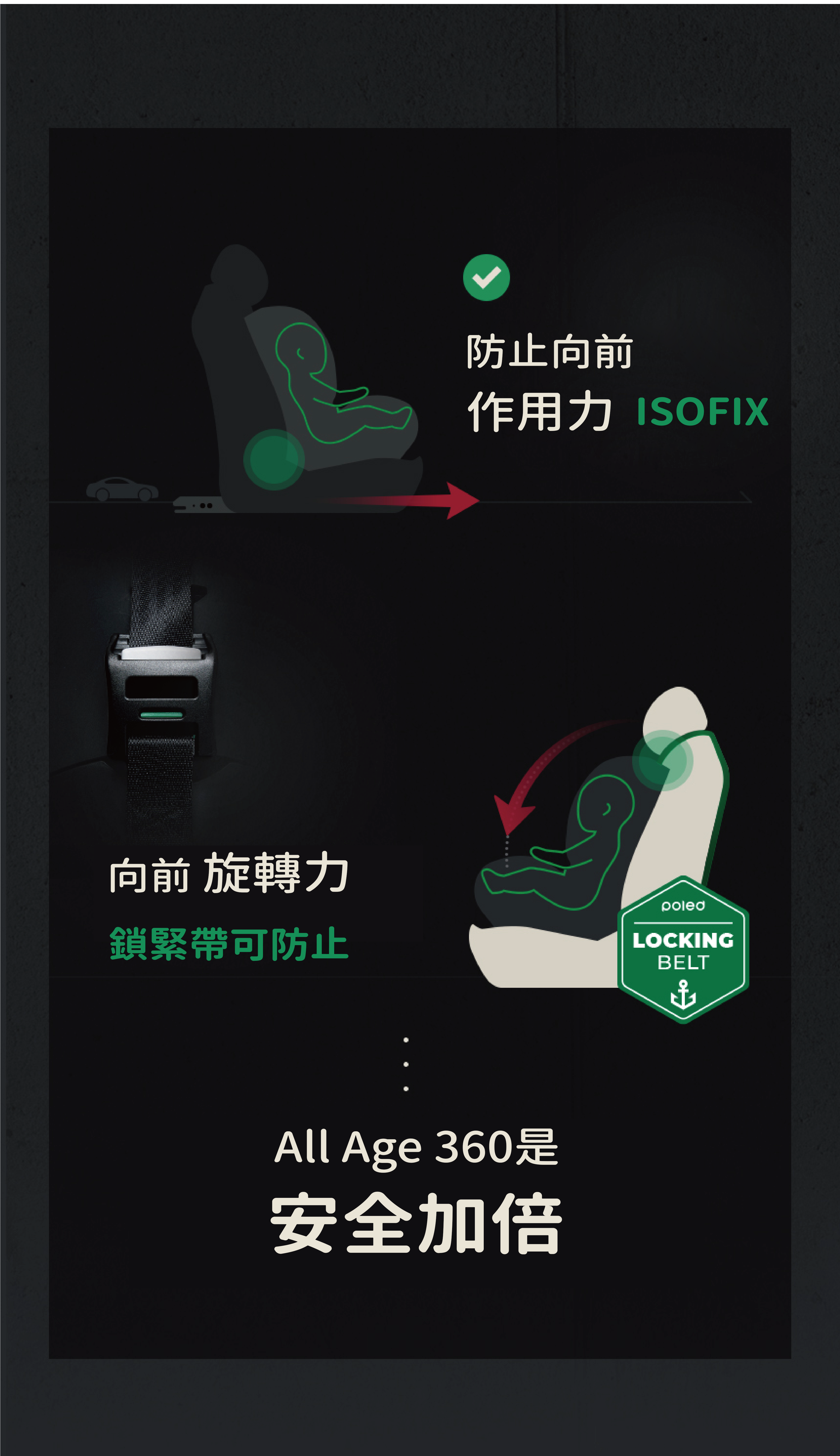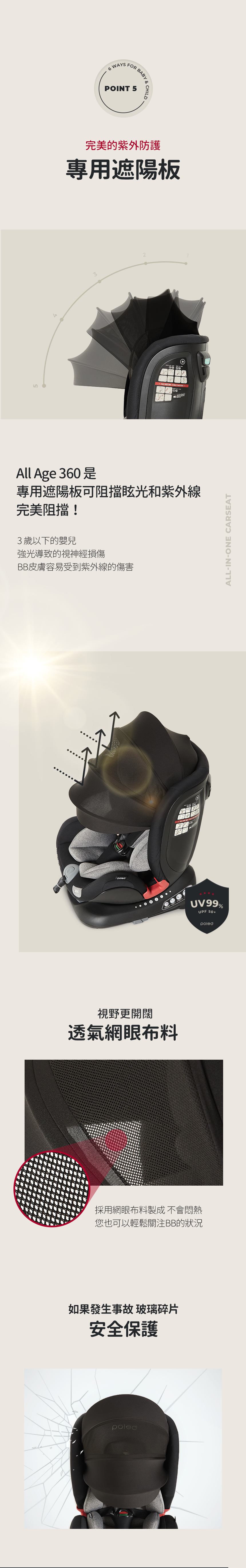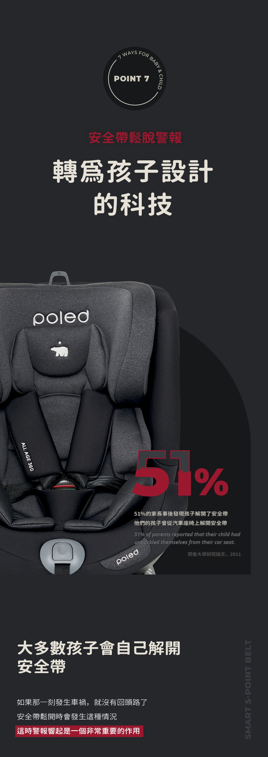 這款Hyundai正式授權的汽車安全座椅是唯一經過真車碰撞測試的產品。POLED汽車座椅由專業研究人員針對碰撞、傷害和人體工學進行設計,具備一鍵式ISOFIX安裝系統和i-size尺寸測試。座椅配有鎖緊帶、低重心回彈限位器,以及四重防護的側面碰撞吸收系統,並設有安全帶鬆開警報,增強安全性。