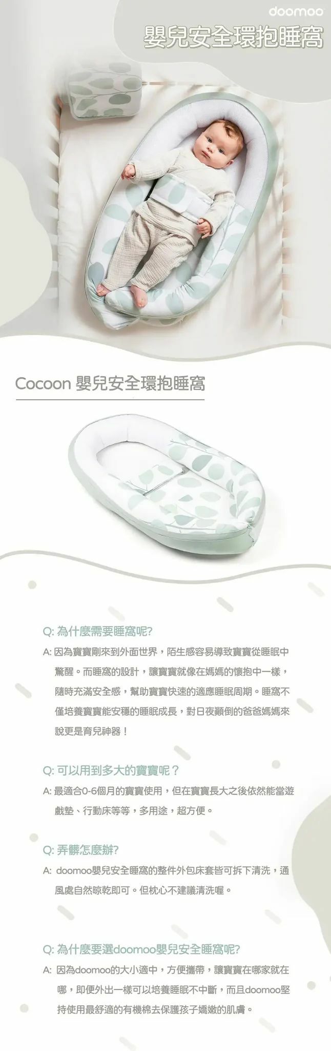 In addition to the detachable belt to ensure baby safety, the Belgian Doomoo luxury sleeping nest is made of soft organic cotton and 3D breathable material around the baby's head, which also allows the baby to sleep comfortably and securely.