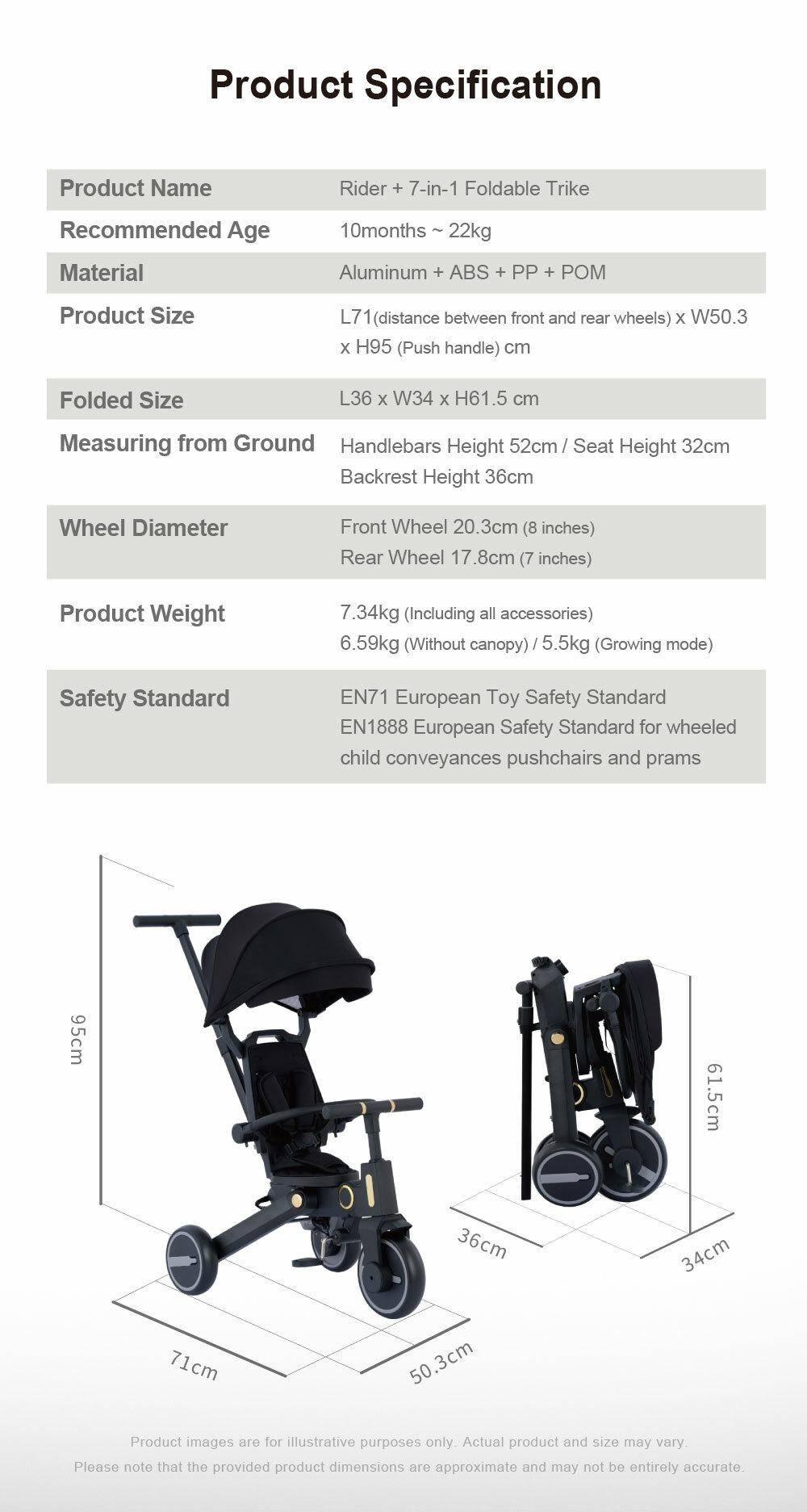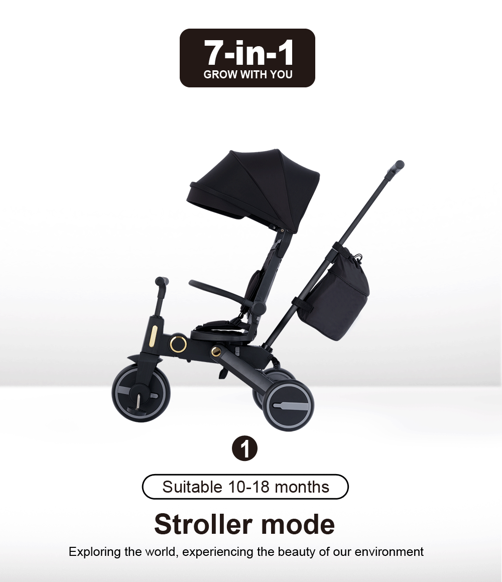 - Multi-functional Design: can be used as a stroller or trike (detachable parent handle, guard rail, hood)