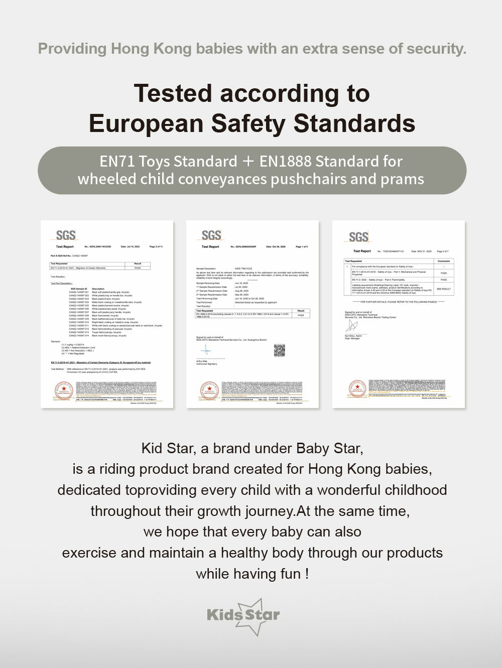 - Tested and approved in accordance with European safety standards EN 71 and EN1888