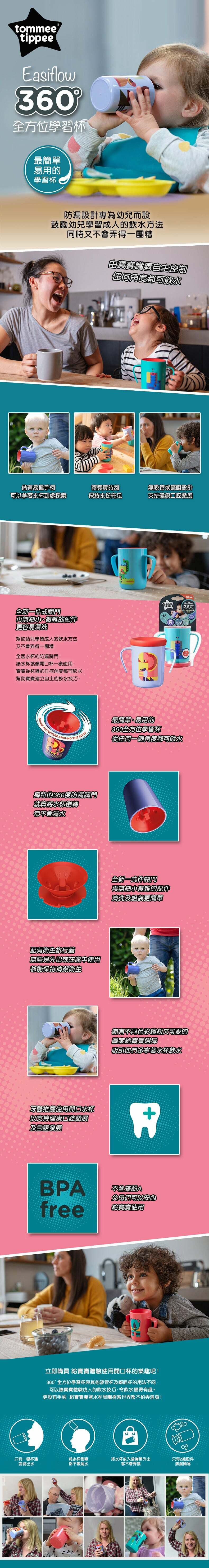 The new 360 All-round Learning Cup, equipped with an easy-to-clean one-piece leak-proof valve, allows young children to drink water at any angle on the side of the cup, and encourages young children to learn adult drinking methods to support oral development.
