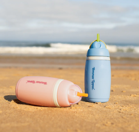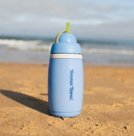 這款防漏的幼兒水杯配有推蓋式杯蓋。採用雙層設計,有助於保持飲料清涼。