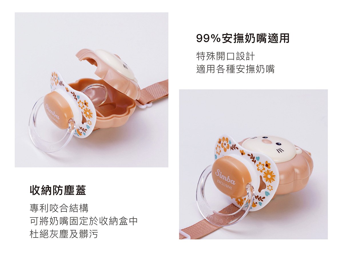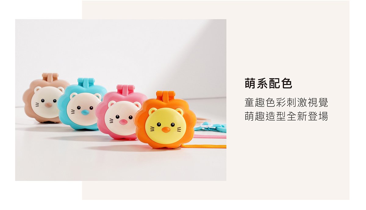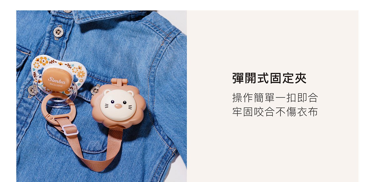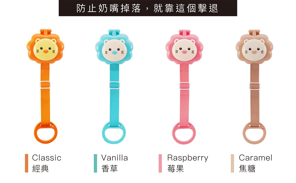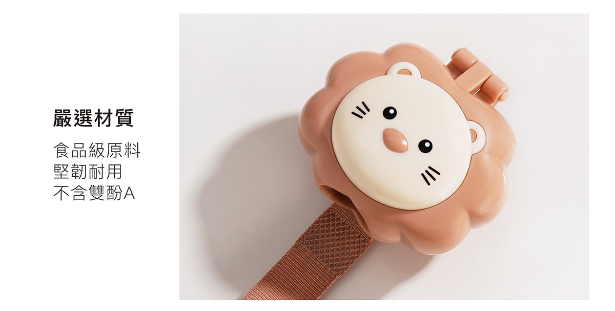 讓可愛度更加倍,配戴率NO.1,萌趣造型全新登場,彈開式固定夾操作簡單一扣即合輕鬆HOLD住大小隨身物品,適用於市面上99.99%奶嘴。多用途預防小物遺失配件,安撫奶嘴的好朋友,通過國際專業SGS檢驗。