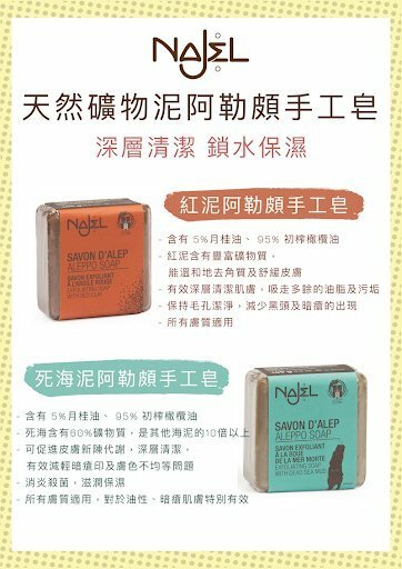 死海泥阿勒頗手工皂含有 5%月桂油 及 95% 初榨橄欖油,能有效深層清潔肌膚,調理肌膚油脂問題,保持毛孔潔淨,