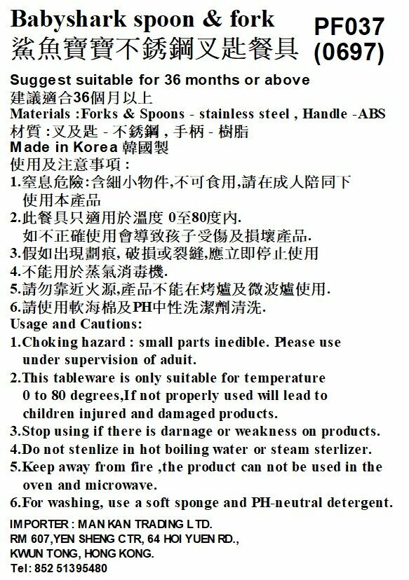 鯊魚寶寶不銹鋼叉匙餐具<80697> PF037