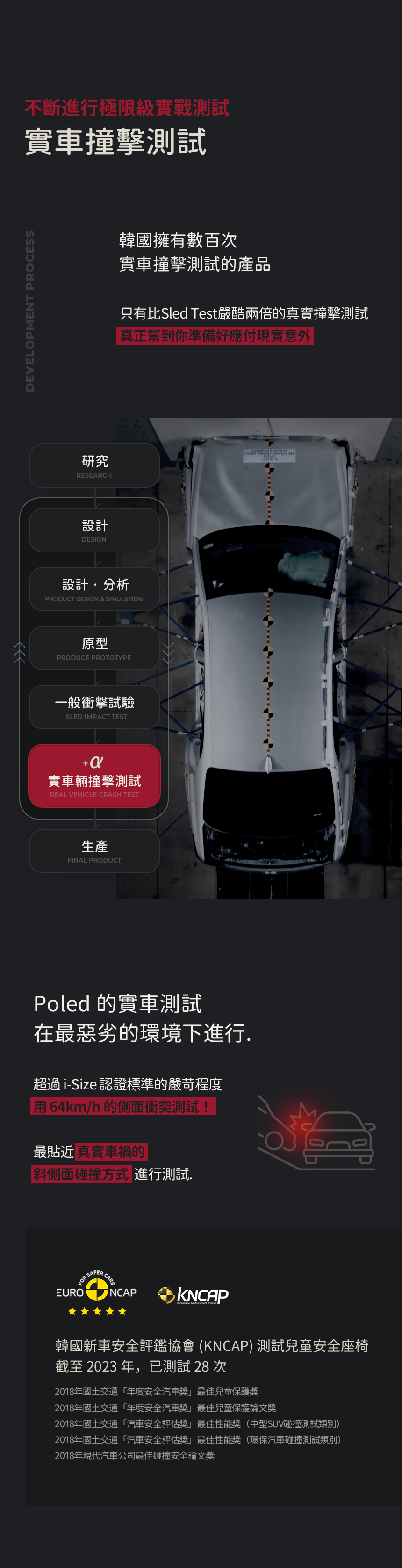 Hyundai 正式授權的汽車安全座椅。唯一使用真車測試碰撞的汽車座椅。