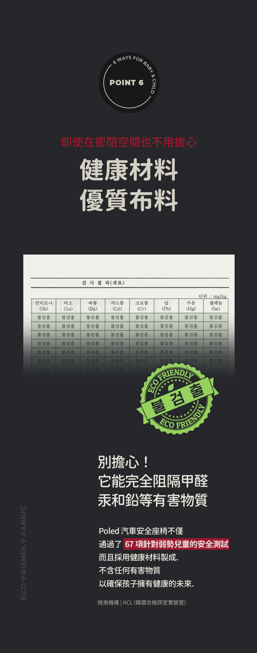 POLED 汽車座椅由專門從事碰撞、傷害和人體工學的研究人員直接設計。專利安全帶調節球形導向器