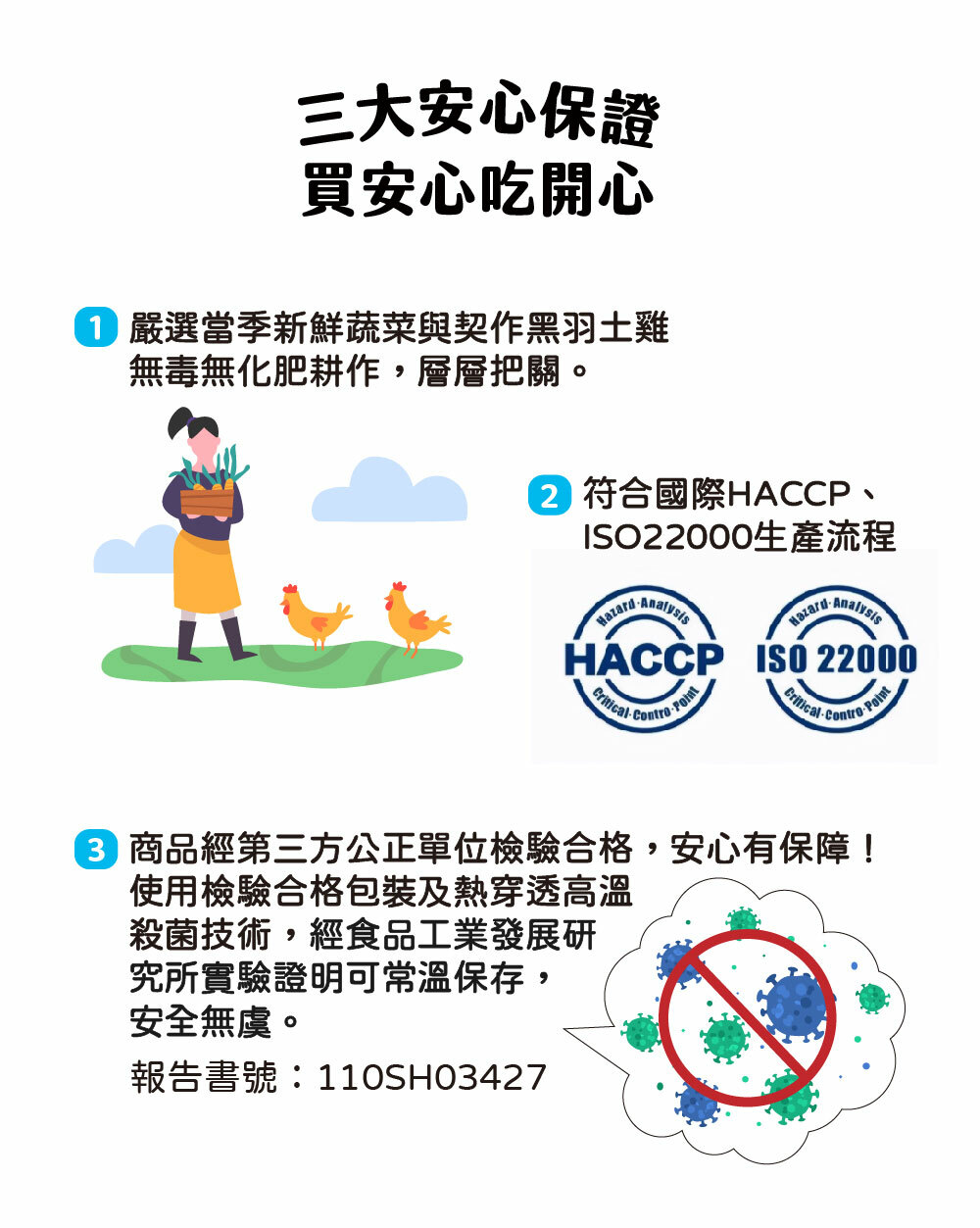 自然、無毒、台灣在地農作物,使用大量黑羽公土雞精心慢熬,並搭配小農友善耕種的蔬果,堅持無毒、無化肥、無農藥種植,雖無美麗的外觀帶有缺陷的蔬果,但呈現天然的香氣,與土雞熬製到食材融於湯中,食材的黃金比例,讓湯頭鮮甜美味,無添加化學成分,讓身體無負擔,自然的安心食物。
