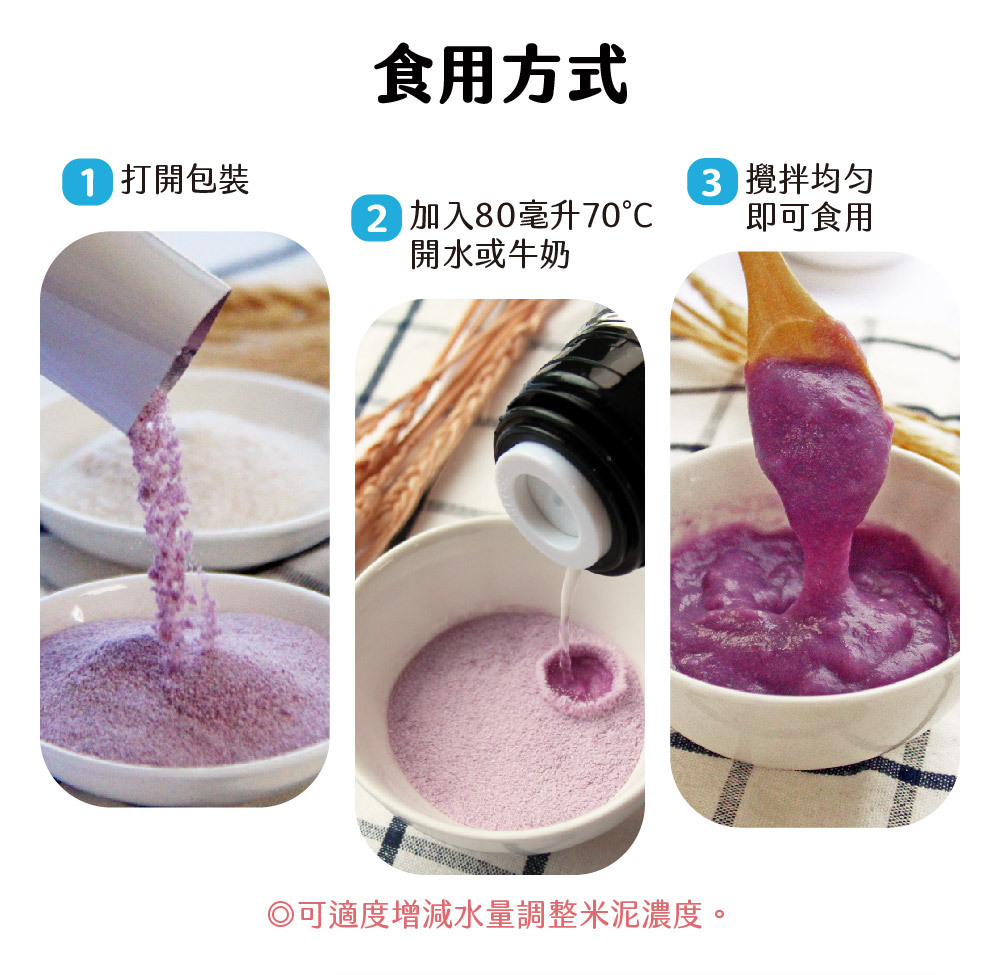 ・質地細緻寶寶好吞嚥,加水攪拌即可