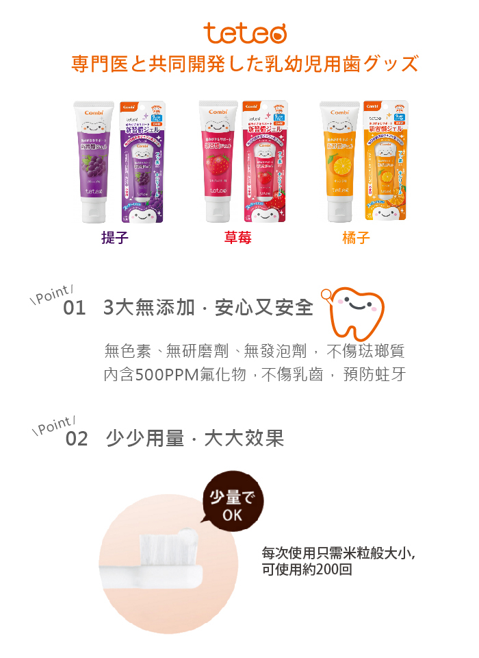無添加色素、無研磨劑、無發泡劑,寶寶使用無負擔