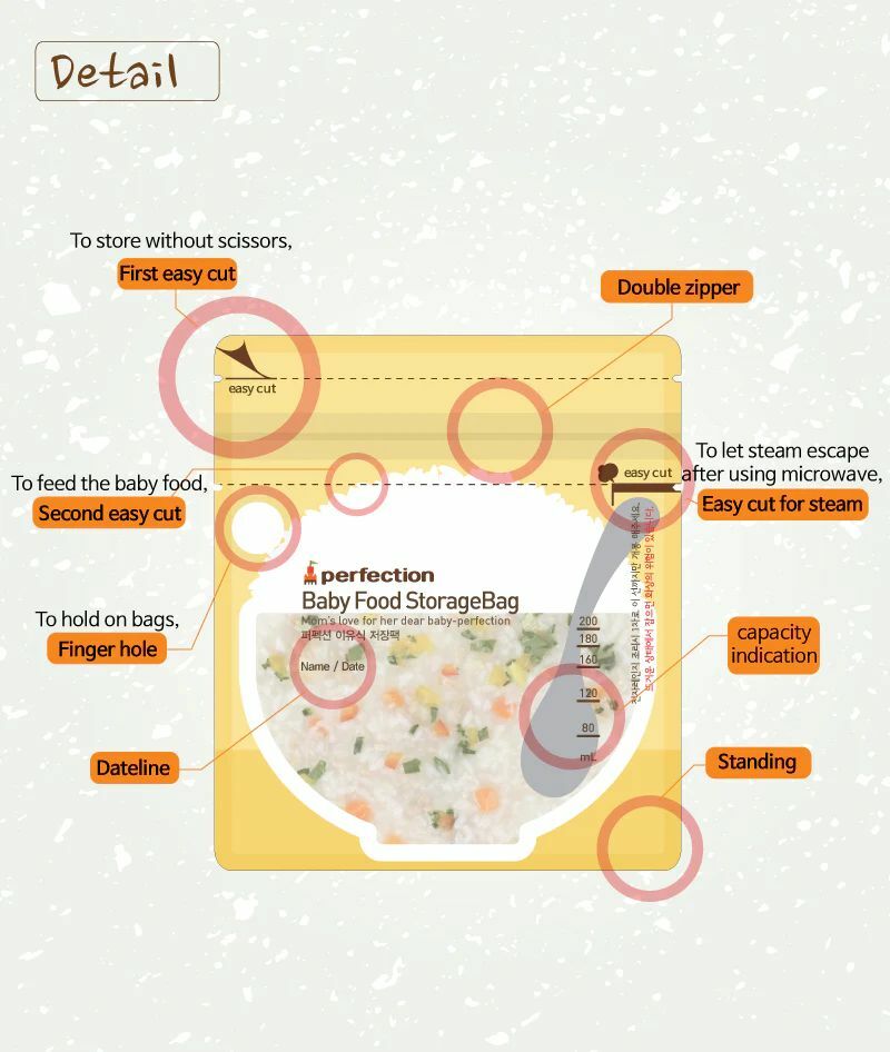 • 抗菌儲存袋上提供資料填寫部分,方便媽媽記錄資料