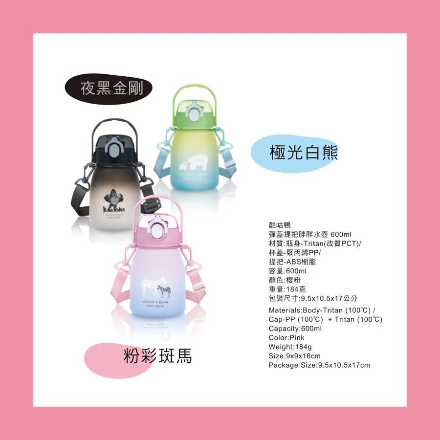 KUKU 彈蓋提把鎖扣漸變水壺 600ml