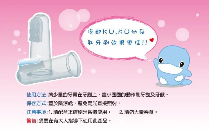 KUKU 綜合水果牙膏含少量氟配方,防蛀效果佳及可保護寶寶牙齦。當您寶寶開始長牙齒時,定期對牙齒及牙齦的清潔是十分重要的。