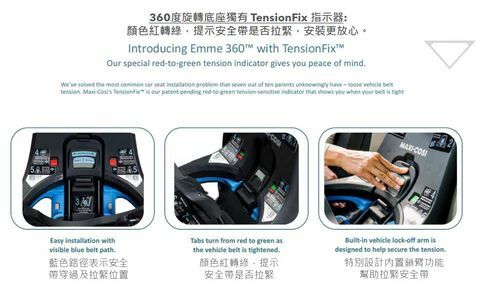 荷蘭EMME 360 ALL IN ONE汽車座椅使用 360 度 FlexiSpin旋轉底座轉動及TensionFix安裝指示器,操作簡易。擁有EMME 360 能確保從初生到 10 歲的孩子得到最安全的保護