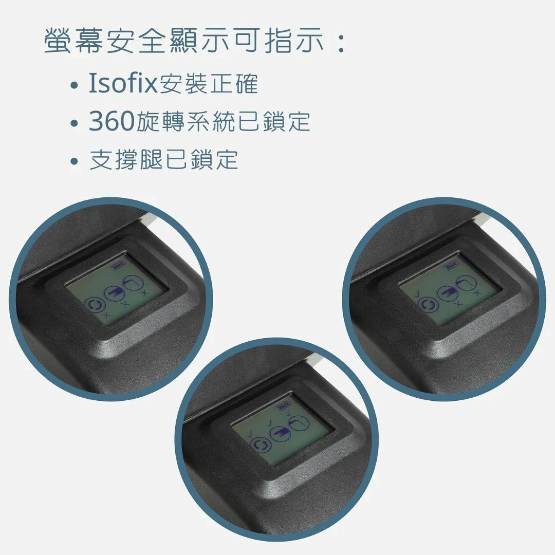 3. 具有安全指示對汽車安全座椅安裝是否正確並準備好「出發」時,視覺指示器會提示家長