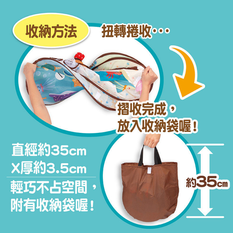 -摺疊後直徑約35cm,厚度約3.5cm,輕巧不占空間,附有收納袋喔!