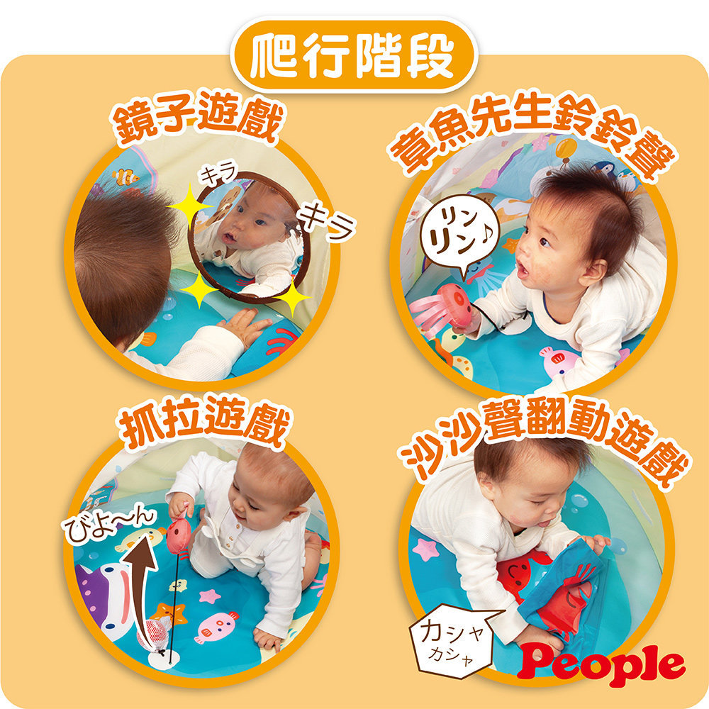3.抓拉遊戲:抓一抓章魚先生,還有旁邊包覆著網子的小球,盡情的玩耍,好有趣呢! 躺臥階段 爬行階段 坐立階