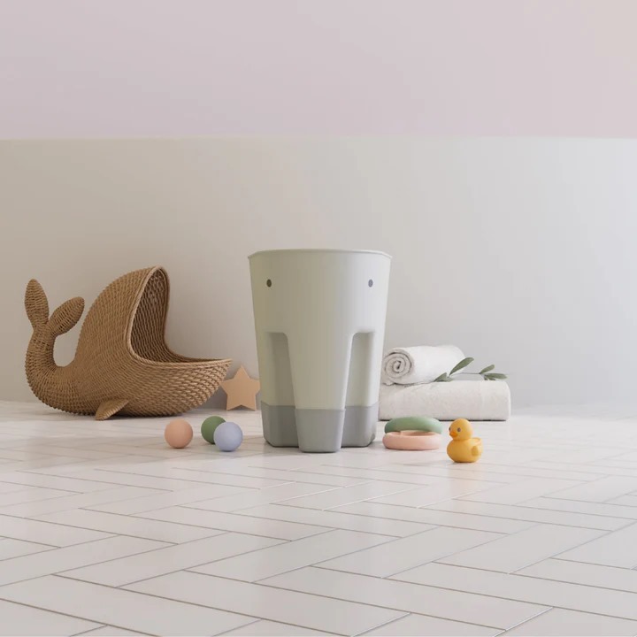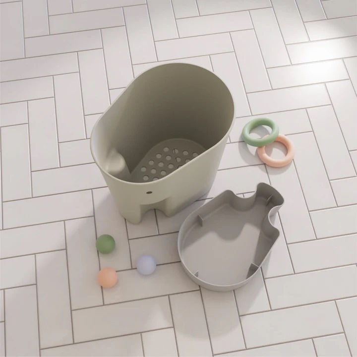 Ellie創新的大象設計採用可愛且實用的鼻子手柄,在洗澡後輕鬆舒適地收拾玩具,並讓水分自然排出。只需將其放在分離的自立式滴水盤上,即可讓玩具自然風乾,有助於降低發黴的風險。
