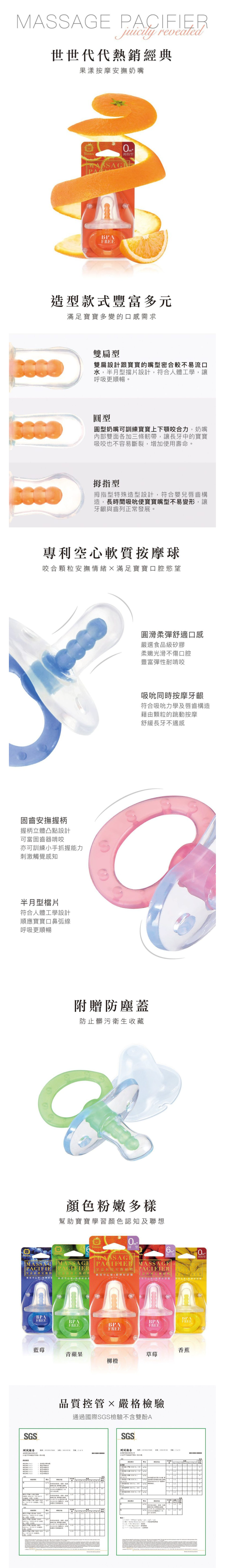 嚴選食品級活性矽膠柔軟富彈性,具有安撫奶嘴及固齒器的雙重功能,一次滿足寶寶長牙期與吸吮期的口腔慾望,三款吸嘴造型輕鬆應對寶寶多變的口感需求,繽紛色彩幫助寶寶學習顏色認知及聯想。
