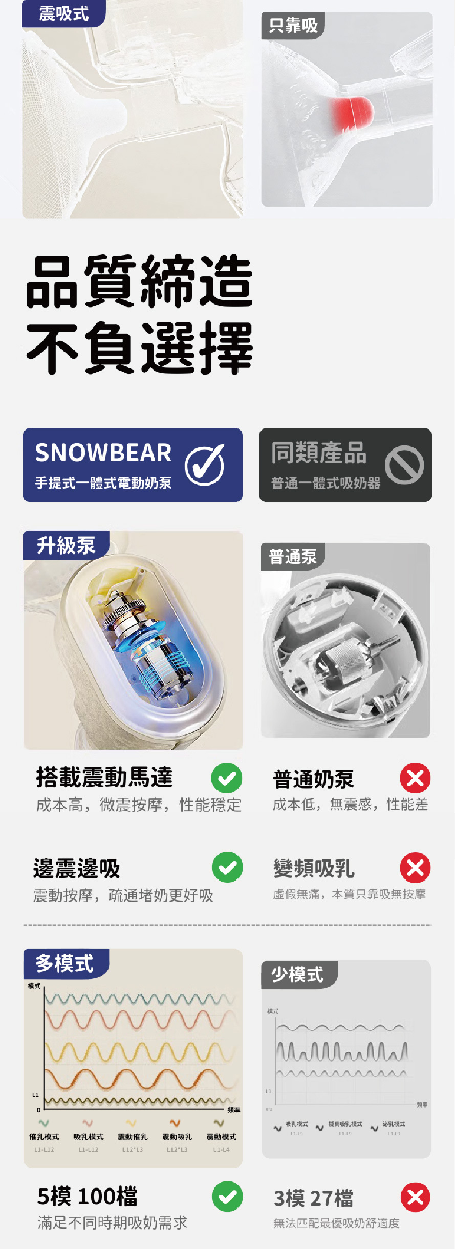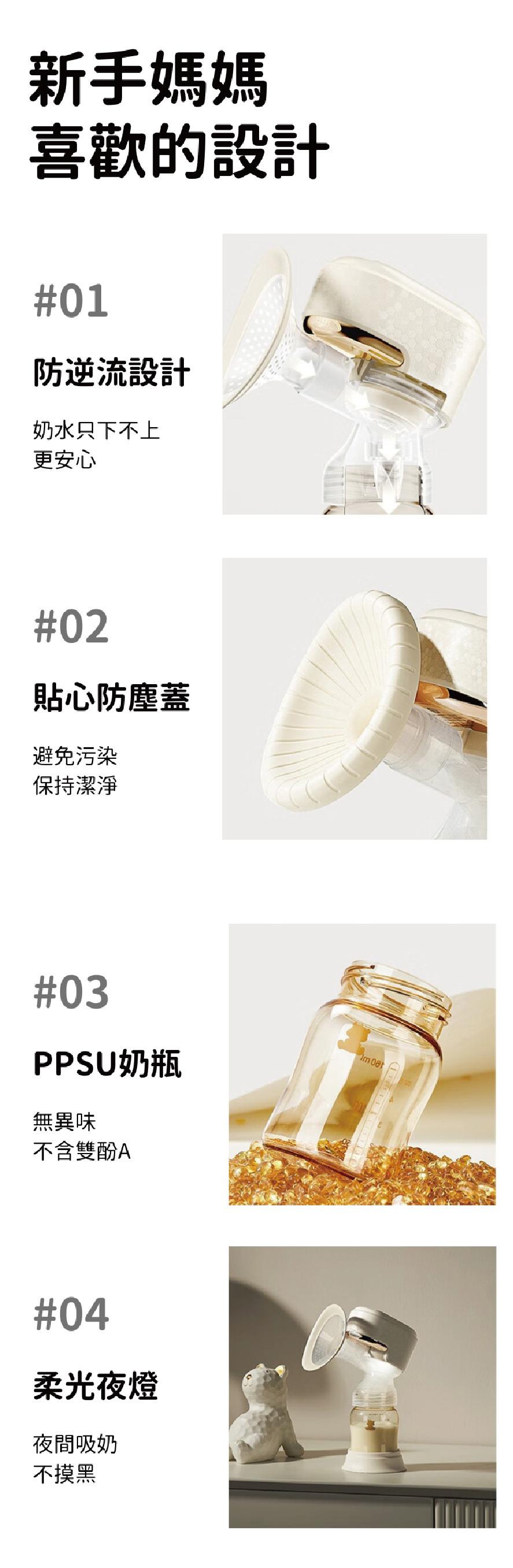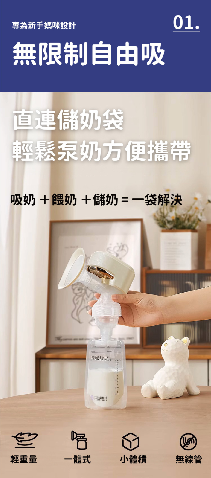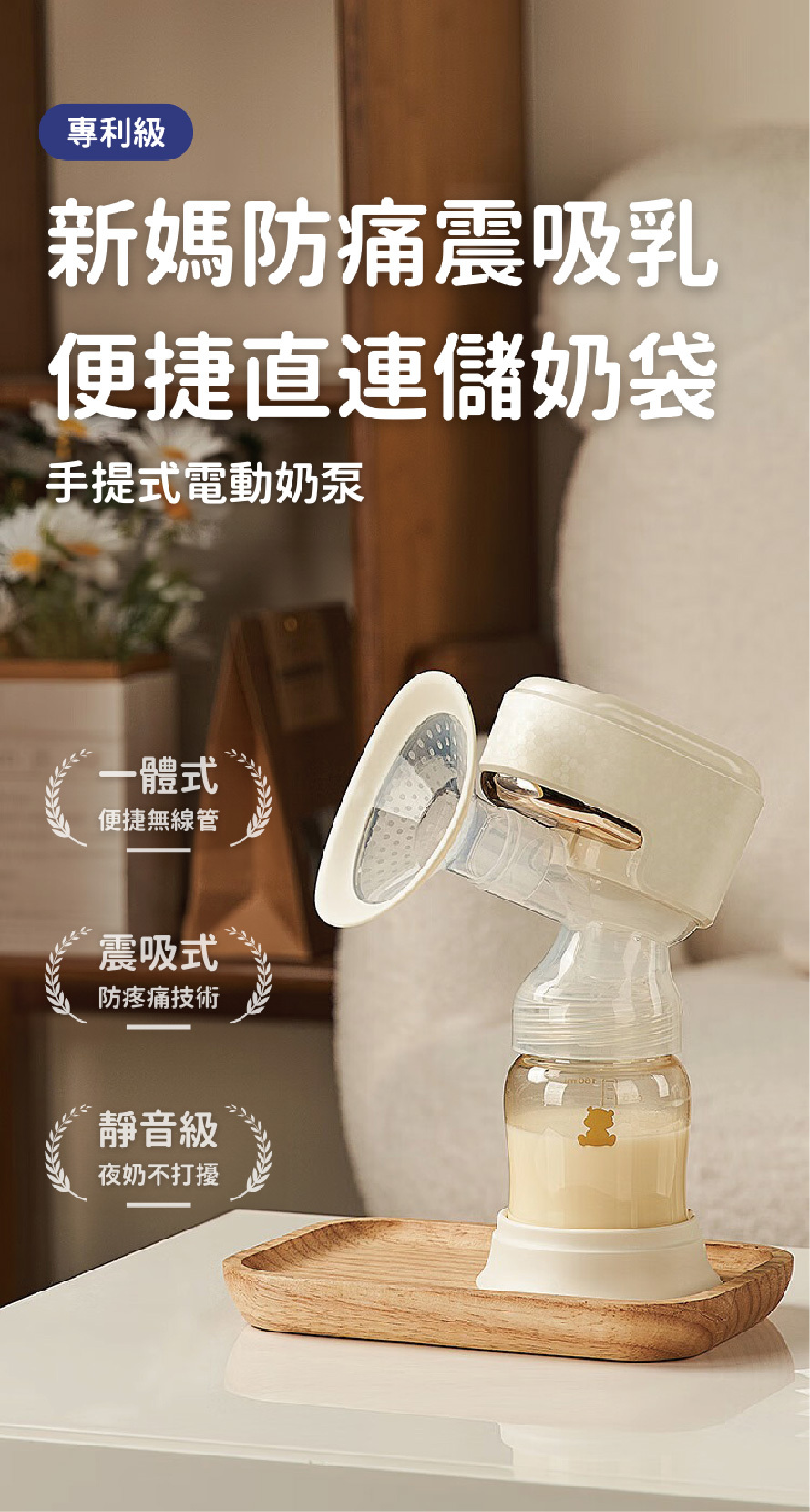 * 隨時隨地泵奶,靜音摩打設計,音量僅為39dB,減低操作時的聲響
