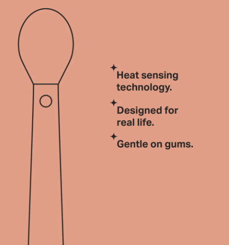 當食物溫度過高,我們的感溫匙會從紅色變為綠色。如您會使用微波爐加熱食物,您便可以一目了然地知道食物是否適合餵食寶寶。勺柄採用凸起衛生設計,有助於防止勺尖和食物接觸任何表面。