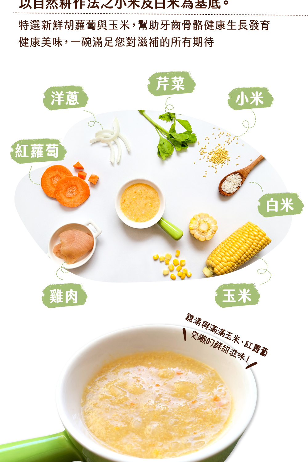 營養豐富的雞湯粥,以自然耕作法之小米及白米為基底