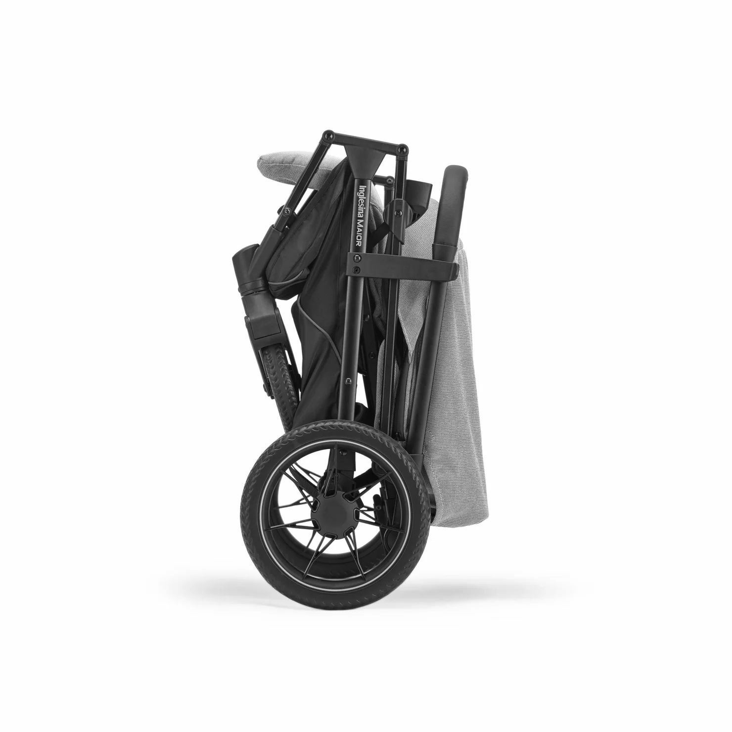 框架:超緊湊的鋁框架,超輕,單手折疊系統,可鎖定轉向前輪,手柄,帶有球軸的大輪子