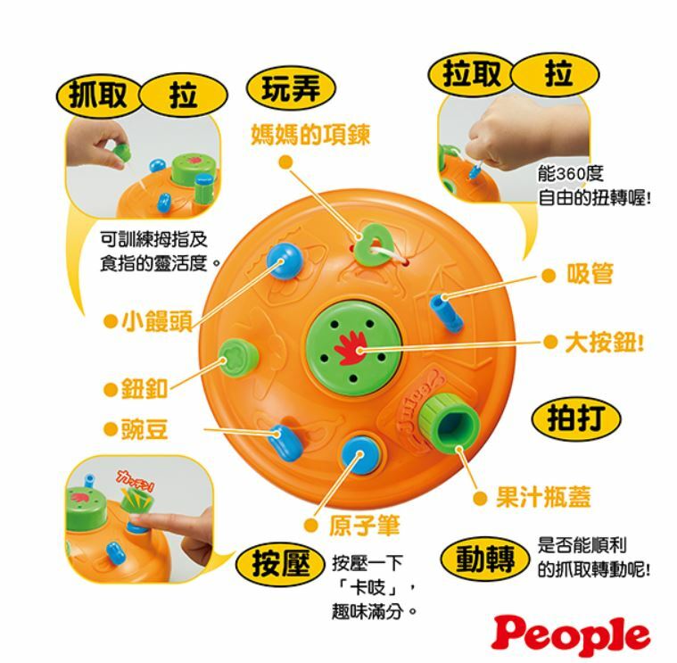 在日本已累計超過100萬的媽媽選擇People 趣味手指訓練盤。充分運用手指,能適度的刺激寶寶腦部,並達到智育的發展。