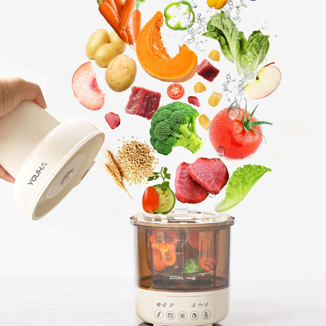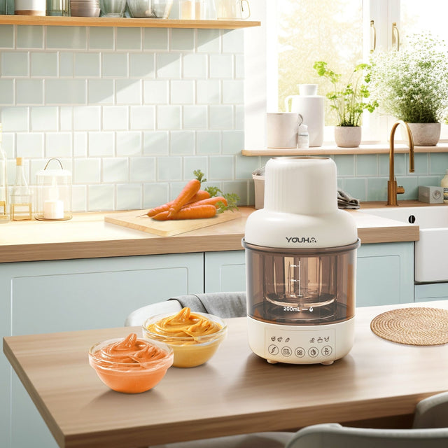 給寶寶最好的開始!YOUHA全能嬰兒輔食機採用5合1多功能設計(蒸煮、攪拌、食物糊、保溫、消毒),讓您輕鬆為寶寶製作新鮮健康的營養輔食。這款專為現代父母設計的智能輔食機,操作簡單、安全又便利,是製作無添加、純天然嬰兒食品的完美選擇。